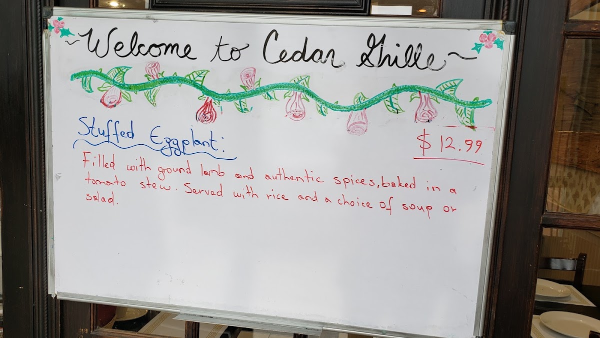 Broiled, with sautéed onions, jalapeños, herbs and tahini sauce.